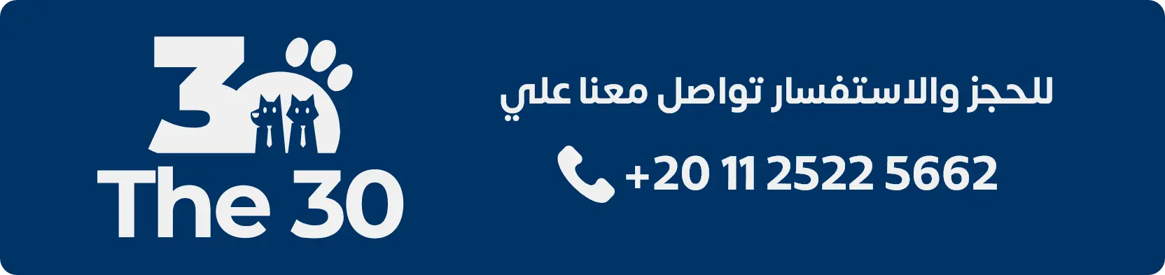لحجز كشف أو التواصل مع The 30 Vet Center، يمكنك بسهولة الاتصال على الرقم +201125225662 أو إرسال رسالة عبر الواتساب لنفس الرقم لطلب الموعد أو الاستفسار عن الخدمات المتوفرة.